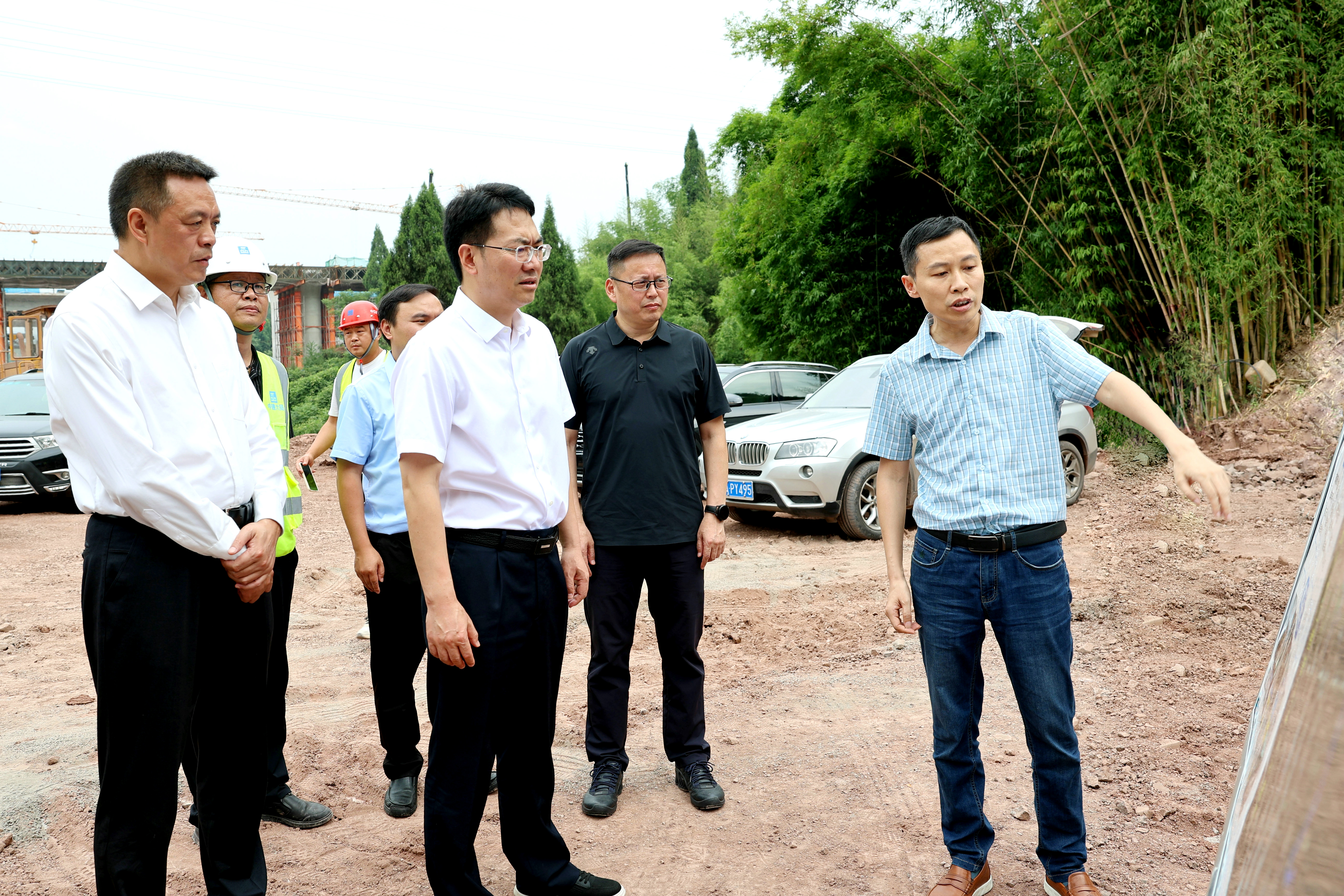 在石板金銀村引水入竹隧道出口施工現(xiàn)場,集團黨委書記、董事長盧輝詳細介紹了引水入竹達州段工程現(xiàn)階段建設情況。袁洪一行先后前往金河大道、百節(jié)泵站實地查看工程進度、項目質(zhì)量和安全文明施工情況,與引水入竹達州段、西渝鐵路、成達萬鐵路、金河大道施工單位、建設單位負責同志深入交流,詳細了解項目建設交叉作業(yè)過程中,存在的有關難點和堵點問題。