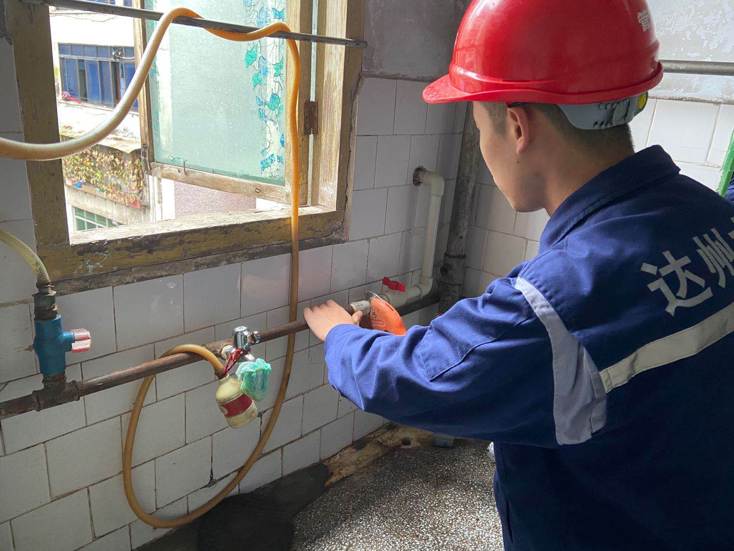 市中區(qū)分公司支部志愿者為結(jié)對幫扶失獨老人義務(wù)更換老舊水管。
