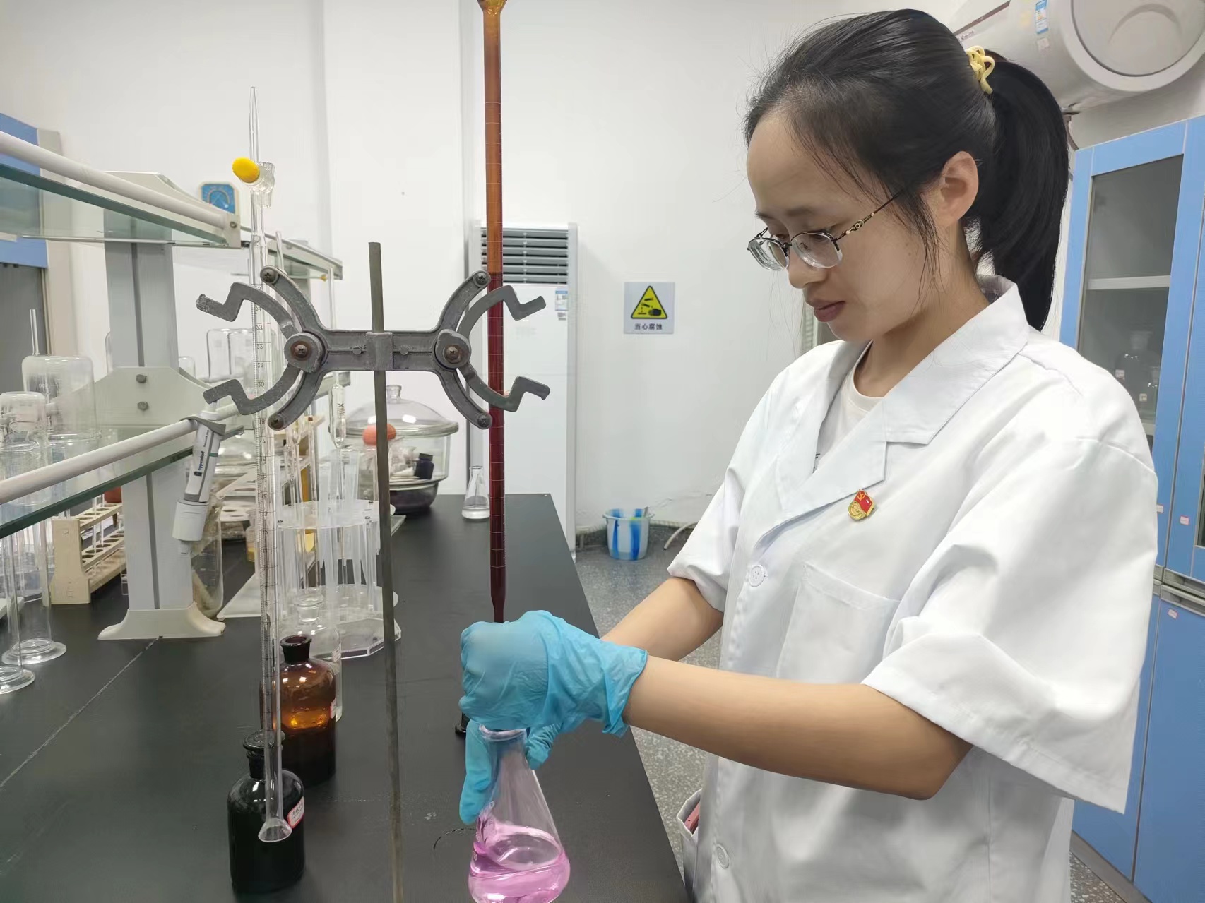 李燕群,水質檢測中心主任、宣傳委員(兼統(tǒng)戰(zhàn)委員)。始終把做好黨務工作作為立足點,履行崗位職責,主動擔當作為,積極帶領黨員參與到供水服務進社區(qū)志愿服務活動中,充分發(fā)揮黨員的先鋒模范作用,宣傳科普水質知識,耐心解答居民用水疑問。遇到問題和困難敢于沖在前面,迎難而上,帶領部門同事開展業(yè)務知識學習,不斷完善水質檢測制度,摸索建立新的檢測方法,主動提升業(yè)務技能,確保檢測及時性和準確度,更好為生產(chǎn)運行服好務,切實履行好水質“把關人”職責。