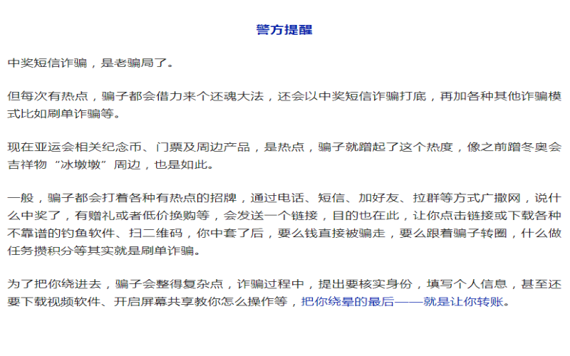 看到中獎(jiǎng)短信,朱女士雖然很開心,但她沒有急著去點(diǎn)短信上的鏈接,冷靜下來一想,像這種亞運(yùn)紀(jì)念幣非常熱門,身邊很多朋友在網(wǎng)上預(yù)約購買都買不到,現(xiàn)在免費(fèi)領(lǐng)取,還是全套,有這么好的事情嗎?朱女士覺得自己可能遇到了騙子,報(bào)了警。