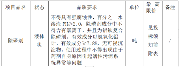 2020年度水處理藥劑(除磷劑)采購(gòu)項(xiàng)目